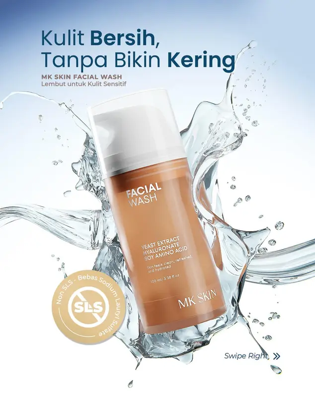 Bersihkan wajah secara maksimal tanpa bikin kulit kering & ketarik dengan gentle facial wash mk skin.